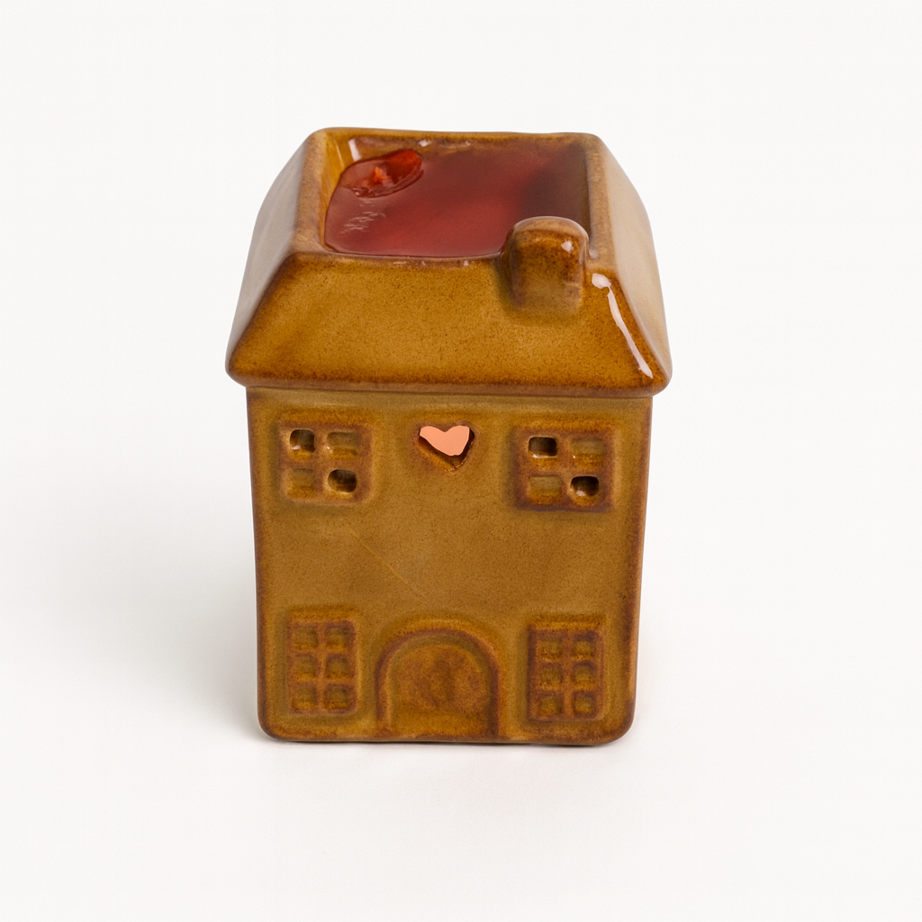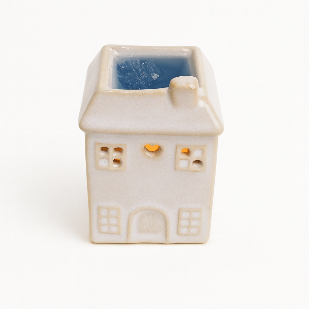 Este quemador combina diseño decorativo y funcionalidad en un formato más pequeño y adorable. Fabricado en cerámica esmaltada, su luz se filtra por las diminutas ventanas creando un efecto cálido y acogedor.